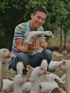 他叫刘继虎,今年28岁,大学学的是畜牧兽医专业,现在在故乡农园从事生态土猪和家禽养殖。他大学学的都是怎么给家禽家畜用药,现在整天做的却是怎么样不给猪用药而能让它们健康成长。不同于养殖场的猪,他养的猪睡的是发酵菌床,没有臭味,不易传播疾病,吃的是麸皮和玉米,至少都要10个月才能出栏。他的土猪叫七号。
