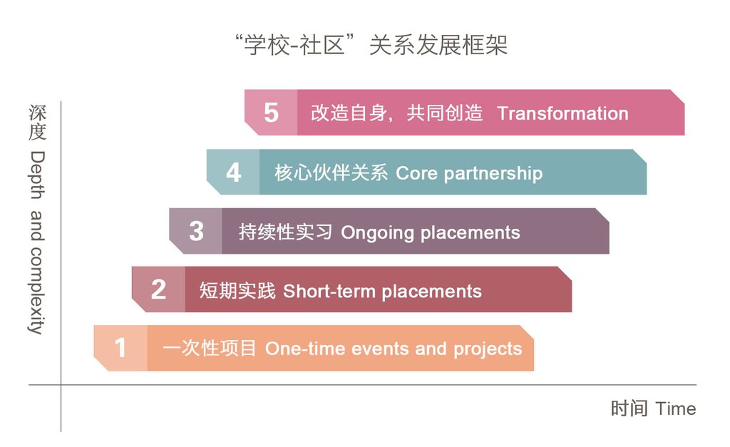 ▲ “学校-社区”关系(Campus-Community Partnerships)的发展框架