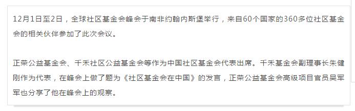正荣公益受邀出席全球社区基金会峰会