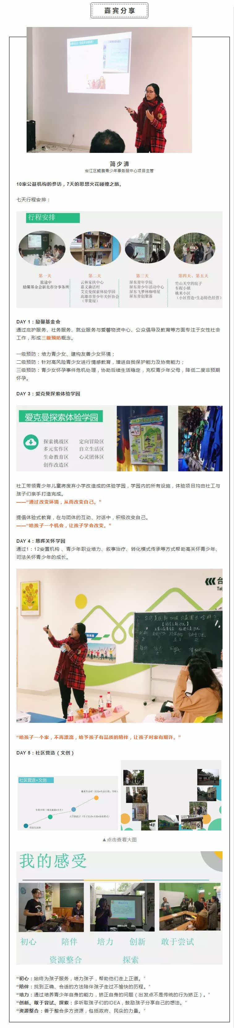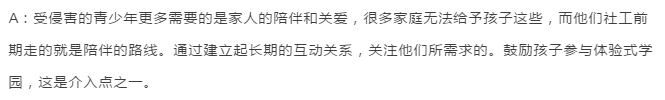“相信每个青少年有他们的能力所在,并给予他们支持,逐步引导、培养他们的能力。”