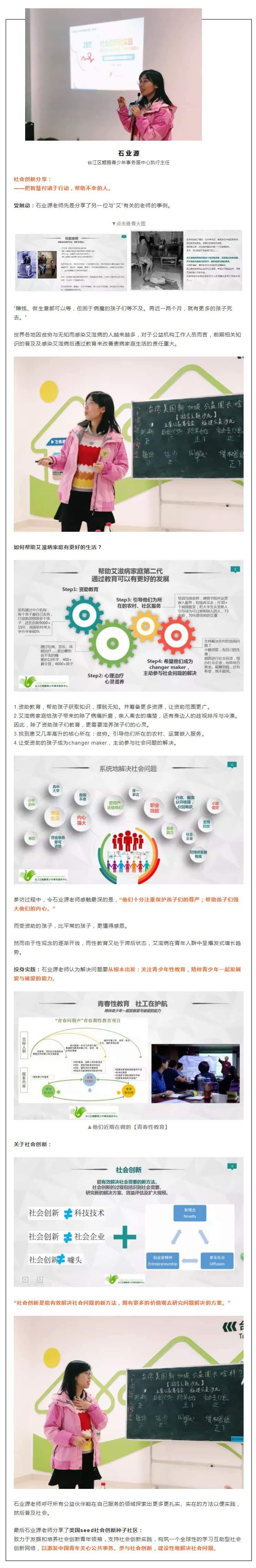 “社会责任感不仅仅是帮助需要帮助的人,可以进一步提升为如何为社会创造多元价值。多元价值不一定局限指向于某一个需要被服务、被帮助的群体。”