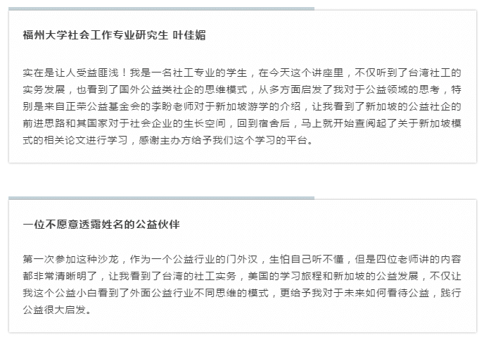 福建公益沙龙带你游历台湾美国新加坡公益圈