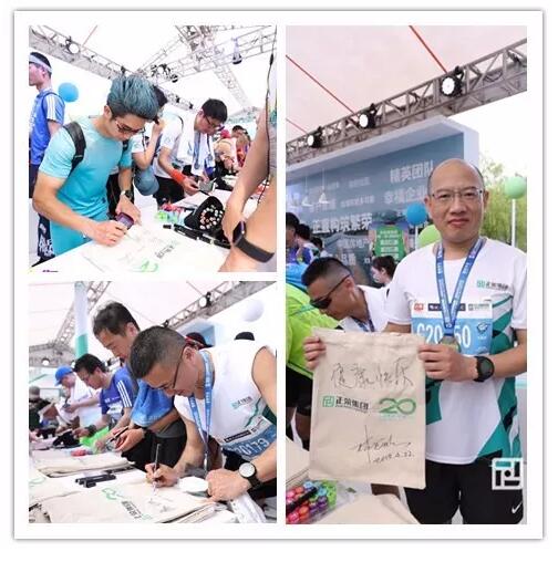 上海半马比赛当天,跑者在“正荣集结站”扫码领取 “彩虹口袋”公益使命,完赛后在“荣遇站”的公益捐赠区,留言祝福。每一位完成公益使命的跑者,正荣即以其名义,向贫困地区的学校捐赠彩虹口袋。该行动收到了现场热烈反响,赛后,正荣集团以爱心跑者之名,捐出1000个彩虹口袋。