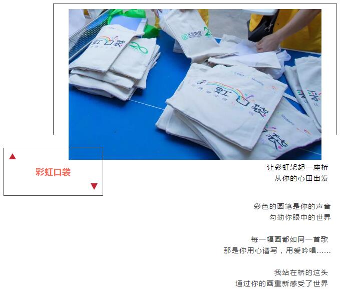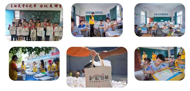 “彩虹口袋”项目,应对的社会问题是贫困地区教育发展不平衡,美育内容尤其匮乏。每份“彩虹口袋”中将装有美术教材、画具、颜料、创作材料等,旨在培养孩子们的艺术创造力。同时,项目结合切实可行的课程教案,并对志愿者、教师进行培训,从而推动乡村小学开展美术课程、发展美育教育。