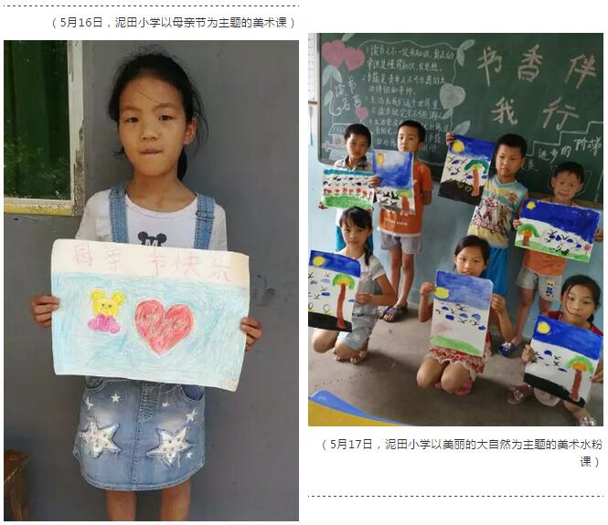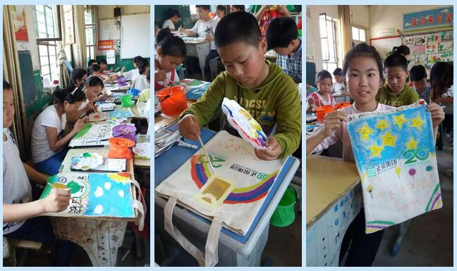 5月10日,安化麦田团队在中砥完小完成发放,在学校老师通力合作下,召集人糖糖逛街声情并茂地向孩子讲述了口袋上寄语祝福背后的故事,鼓舞了每一个孩子们。当地的老师还为孩子们上了一节以“鱼”为主题的美术课,第一次接触美术,当画笔在画纸上留下色彩的时候,孩子们显得异常的好奇和欣喜。有位老师笑着说道,孩子们拿到口袋,今晚只怕做梦都会笑出来。