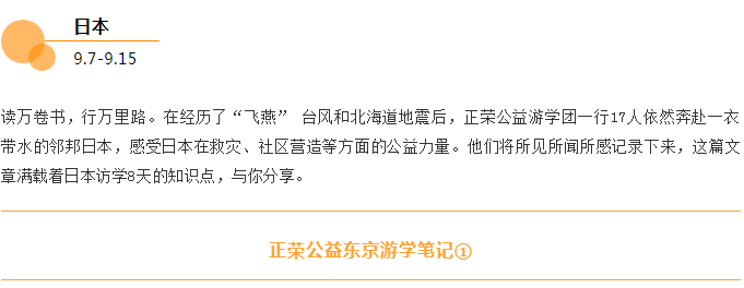 正荣公益游学东京社造之行于9月15日结束,我们从东京飞回福州,迫不及待要将行囊中收获的见闻和思考分享给大家。