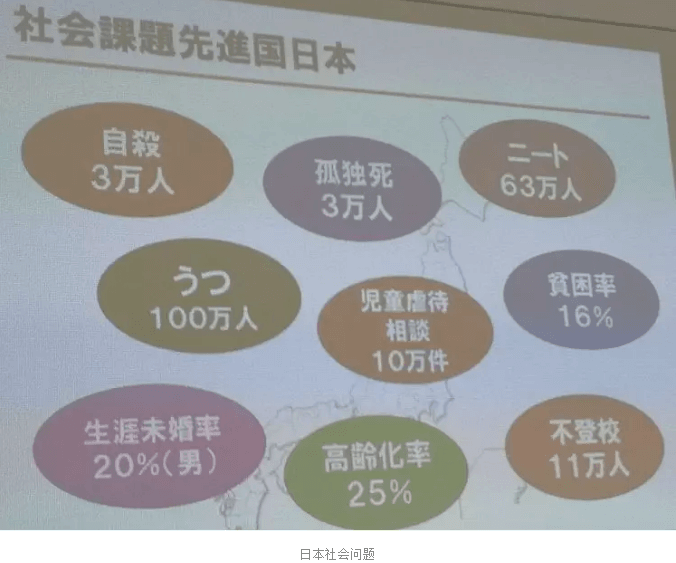 社区营造主要是回应和解决当前日本存在的社会问题开展的系列工作。社会问题主要存在以下方面:一是日本老龄化程度加深,日本的老龄化为25%,由此带来的孤独死(每年大约30000人孤独死)、劳动力不足、农村空心化、人口减少等社会问题;二是经济停滞造成商店街区衰退,地域活力不足,造成社区人与人之间关系疏离;三是生活压力大引发高自杀率(每年大约30000人自杀)。