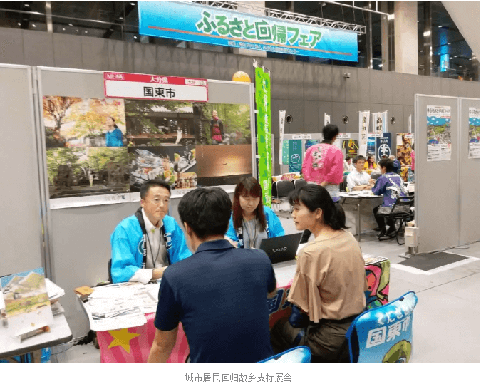 Furusato回归故乡支持中心的全国集会活动,日本的各地的NPO机构集中做宣讲,各个地区向年轻人讲解当地招募青年回乡工作的政策,他们称之为“回归故乡运动”。各地区为返乡青年提供教育、住房、医疗、社会保障等基础服务,鼓励青年人回归到生活的农村,该NPO 组织为全国返乡的青年提供各地的支持政策信息及返乡青年的派遣工作协调。青年返乡也从侧面印证了在乡村见闻中的日本农村空心化的现象。