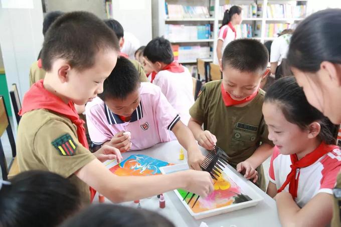 接着,30位4-6年级的学生代表参加了上午在学校图书馆举行的素质拓展活动。活动以小组合作的形式,设置了水拓画、“我心目中的学校”彩铅画、“爱我中国”拼图等项目。志愿者们与小朋友们积极互动,活动氛围热闹活泼。