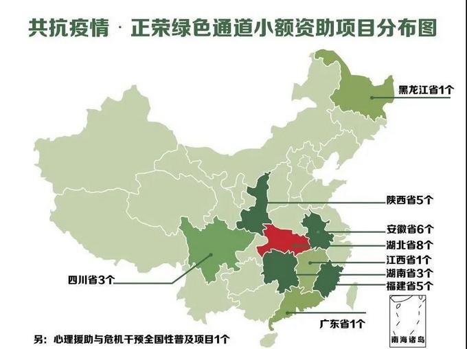 正荣公益基金会发挥自身优势,以小额资助的方式,支持民间力量理性协作、共抗疫情,第一时间开通绿色支援通道,目前开展第一、二期已累计资助全国范围内公益项目34个,覆盖覆盖湖北、陕西、安徽等9个省份,以及包含1个全国性普及项目。