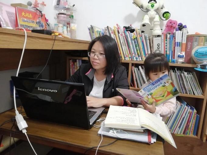 妈妈在工作,我陪着妈妈。