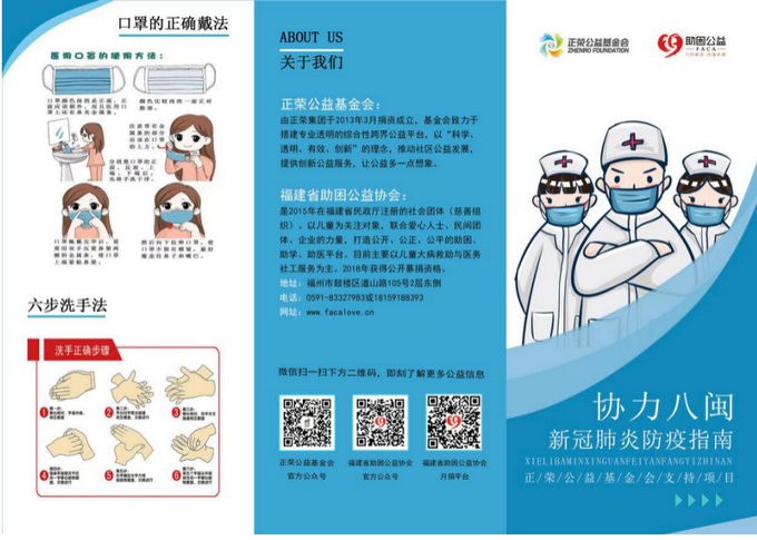 6、本周二联系印刷公司了解“协力八闽.新冠肺炎公众防疫手册”的印刷进展; 协力八闽.新冠肺炎公众防疫手册印刷完成,正在联系与我协会有联劝关系的机构进行赠送;