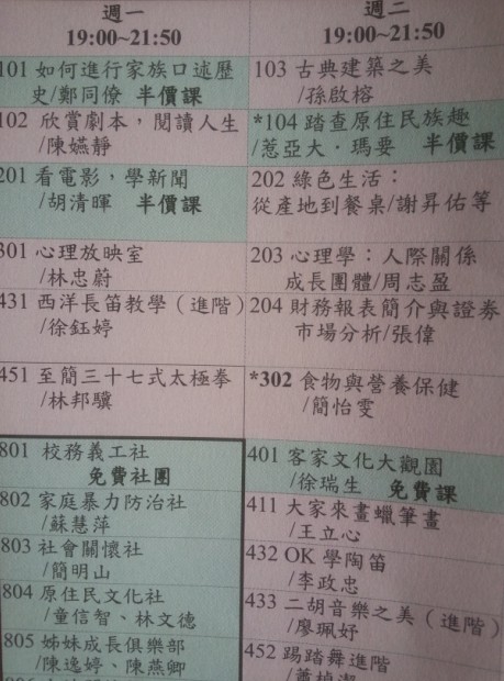 图5:永和社大2014年秋季部分课程