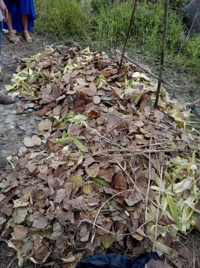 在已剪下杂草的土地上方铺放一层有机质并浇水。有机质包括厨余、叶子、果皮等等,但是油腻的馊水不适合。