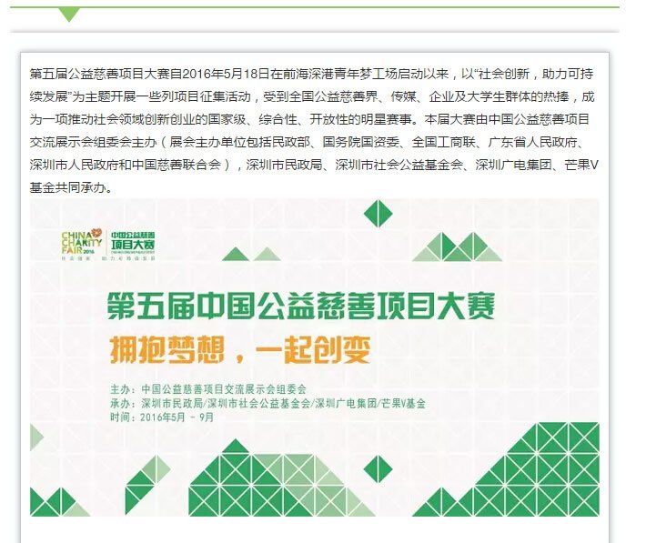 第五届中国公益慈善项目大赛社会创新项目百强名单公布,由正荣公益基金会申报“你好社区"、"故乡农园"两个项目成功入围,将继续参与晋级赛的评选。