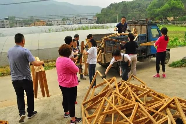 共同将搭建dome的材料和工具整理装车运送搭建地点