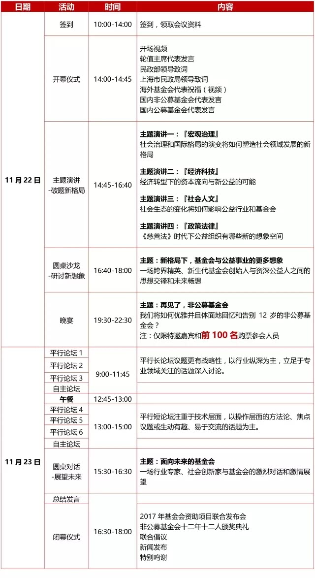 重磅邀请:11月22日~23日,非公募基金会论坛邀您参与中国公益行业最具影响力的交流盛会 !