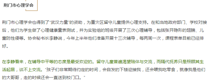 周升磊说,临时作为补充,“和平台在其他区域的一些资源可以引入进湖北,这也是一加一大于二的体现。”另外,他们也积极开展全国性平台的合作。3月18日,武汉恩派社会创新发展中心、正荣公益基金会、中国好公益平台、武汉市社会组织发展基金会将和众多优秀的社会组织一道,联合奉上一场“好公益 心力量”湖北公益嘉年华。
