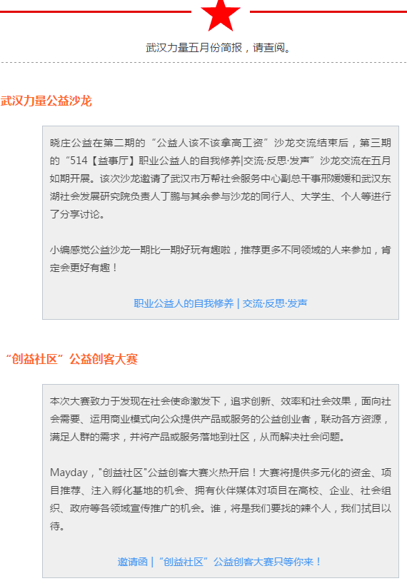 武汉力量,是由正荣地产捐资在正荣公益基金会设立的专项公益项目。该项目面向武汉及湖北区域,通过“创新、有效、灵活”的资助模式,支持在地民间公益组织开展灾害服务项目、社会创新行动等,以聚合多方力量,助力当地的公益行业发展和社会建设。