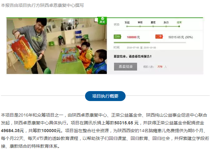 【结项公示】助脑瘫患儿重拾教育 | 和众筹