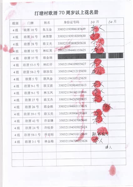 2017年10月福寿金发放情况如下。