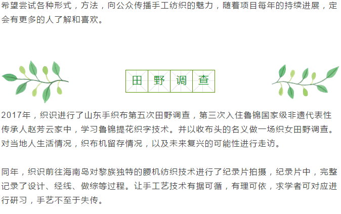 通过传播纺织这个媒介,打开认识这个世界的新大门,通过观察,收集,体验,想象,发问,去多角度,多维度创作新的作品。