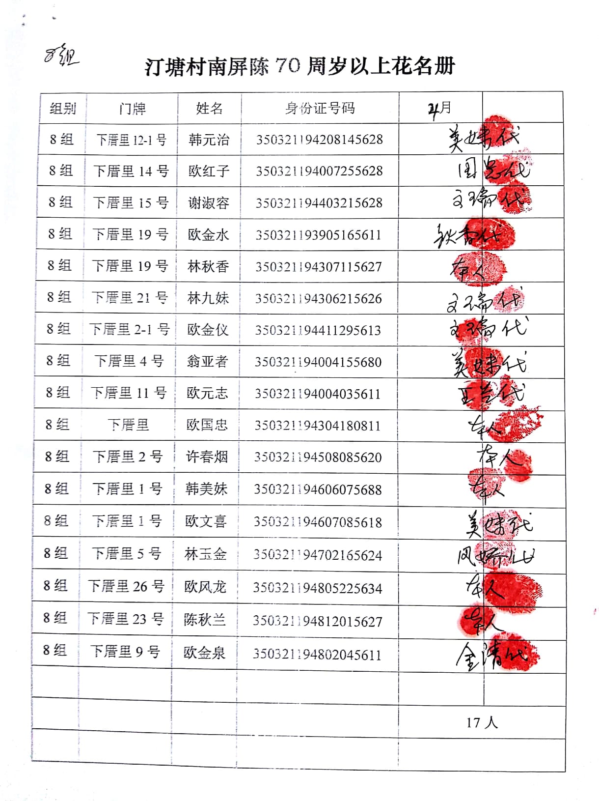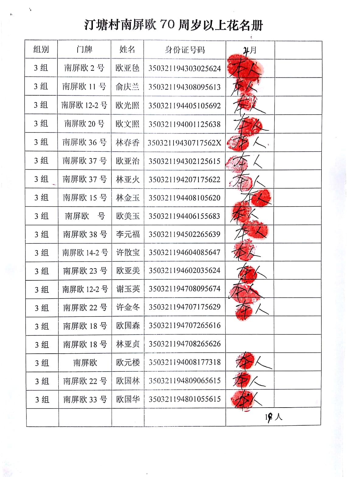 正荣福寿金自2014年设立,2018年4月为汀塘村70周岁以上的老人发放400-1000元不等礼金(70-79岁老人,一个月400元;80-89岁老人,一个月600元;90-99岁老人,一个月700元;100岁及以上,一个月1000元。)