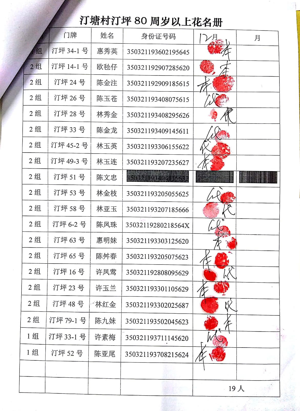 2017年12月福寿金发放情况如下。