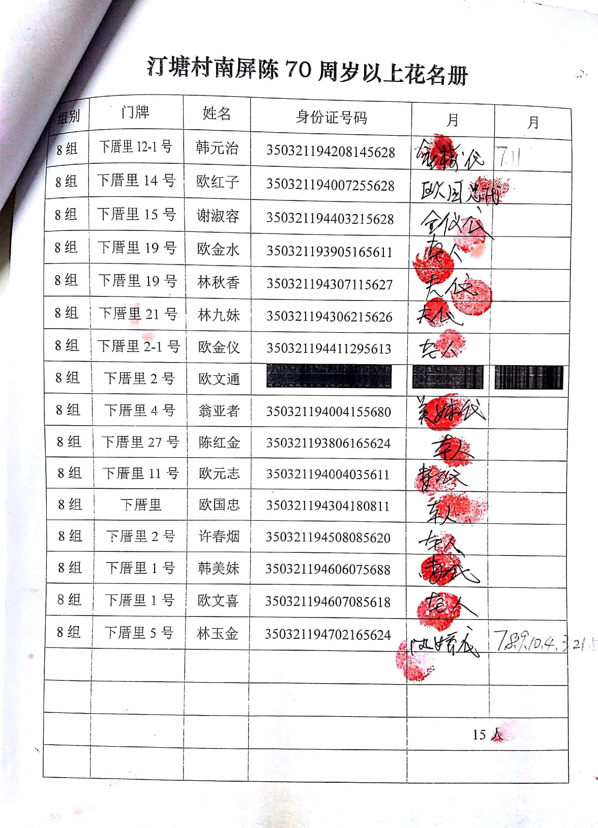 正荣福寿金自2014年设立,每月为汀塘村70周岁以上的老人发放300-600元不等礼金(70-79岁老人,一个月300元;80-89岁老人,一个月500元;90岁以上老人一个月600元。)