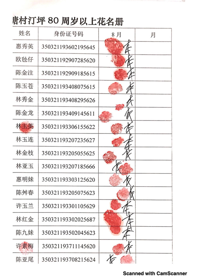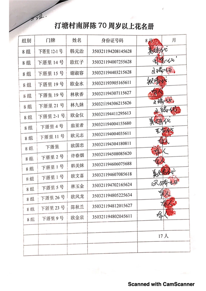 2018年8月,项目为汀塘村70周岁以上的老人发放400-1000元不等礼金(70-79岁老人,一个月400元;80-89岁老人,一个月600元;90-99岁老人,一个月700元;100岁及以上,一个月1000元。)