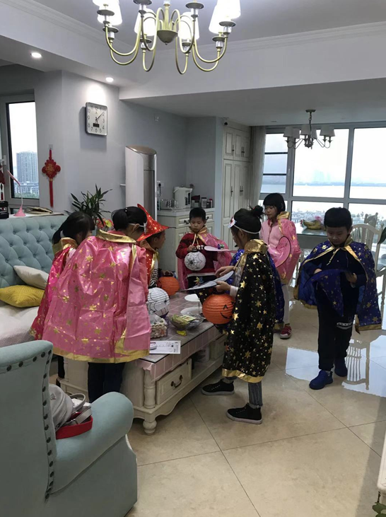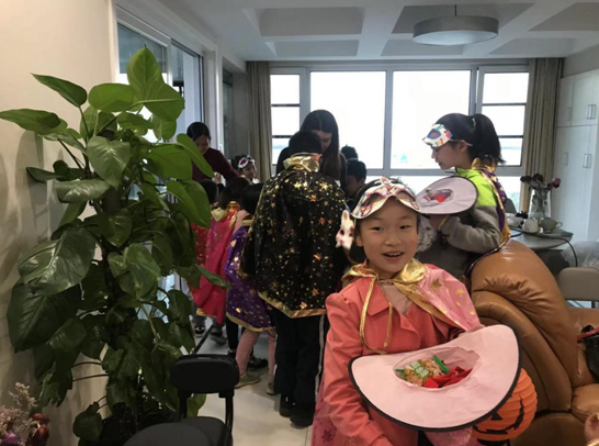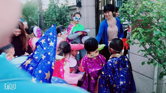 由书院和物业以及社区的邻居们一起策划,一起完成了万圣节讨糖活动。值得一提得的是,18个萌娃全部来自国领社区,而且去讨糖的家庭也是自愿报名的。