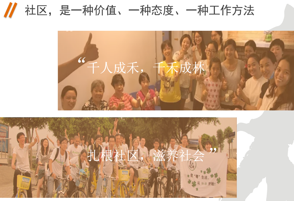 千禾基金会是2009年9月在广东省民政厅正式登记注册的,发起人是一些来自珠三角地区的民营企业家和中山大学的学者,都有比较长时间的公益经验。千禾的愿景是建设一个公正关爱和可持续发展的社会。同时我们认为社区是这个社会最基础的细胞,只有这个社区好了这个社会才会好,并且非常认可人对于这个社区发展的重要意义。所以在千禾成立之初,我们非常关注推动和培力社区里的积极行动者。