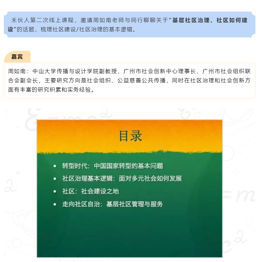 跟禾伙人一起学02 | 社区如何建设:新时代的基层社区治理”