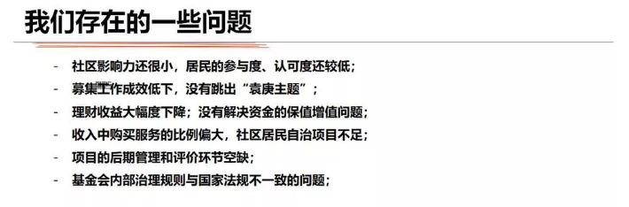 最后还想谈一点我们的认识,社区基金会在追求资本金增值同时,要注意积累和增加社区基金会的社会资本。