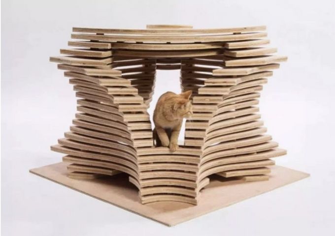 Abramson Teiger Architects设计的“猫碗”猫屋是最受欢迎的一款猫窝。它的设计灵感来自中国道教的阴阳符号,整体采用木质结构,猫窝整体表现为鱼缸形式。木质结构层层叠叠,让猫咪可以自由观察外界的同时也方便藏匿起来的极富有安全感的设计。
