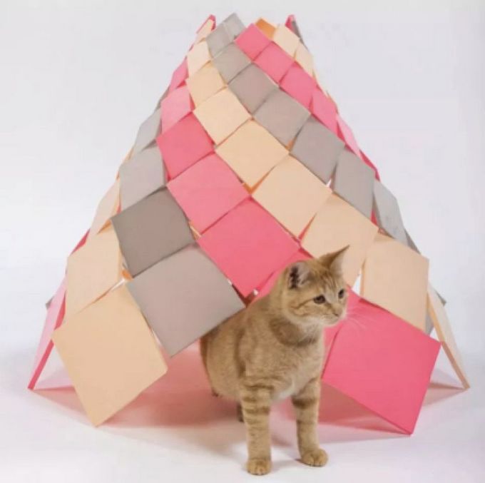 这一款猫窝以猫咪独特的神秘气质为概念设计而成。层叠设计让猫屋多了些神秘感,猫咪可以踱着猫步在猫屋中来回穿梭。