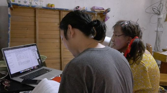 喜公益联合发起人唐冠华协助刘培麟第二次校对《我的一生》书籍内容。这是《我的一生》第二次校对工作,第一次校对由王俊完成。(摄影/Sisu)