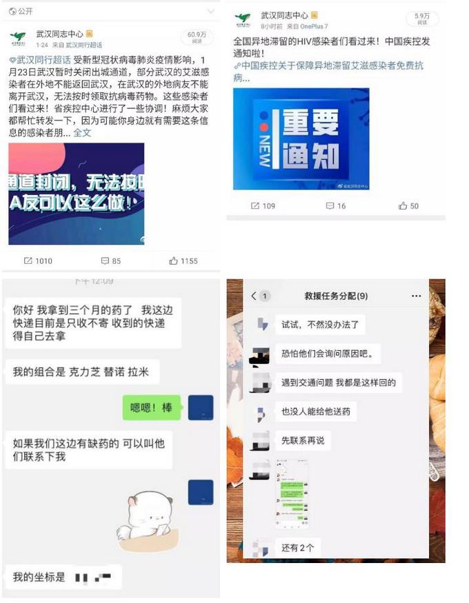 组织工作人员和志愿者为艾滋感染者提供就近疾控领药指导、招募武汉地区志愿者开车接送感染者去医院领药、建立微信群方便感染者相互借药、为感染者邮寄药物等支持。截止到27日24时,总计提供帮助313人次,27日当天提供帮助108人次。指导艾滋感染者异地领药的文章,在微信内阅读数为2.1万,在微博上阅读数为105.4万,共转发1375次。