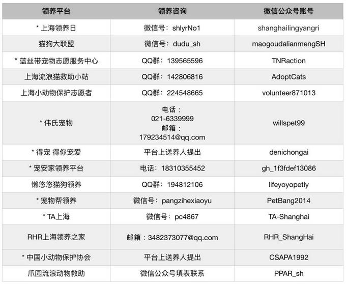 今日小编给大家附上上海地区部分领养渠道。