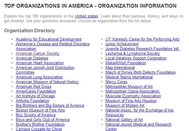 美国部分慈善组织名录