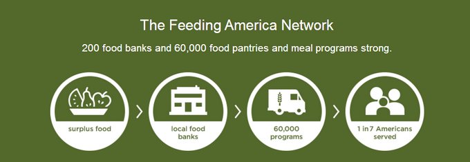以消除美国饥饿组织(Feeding America)为例,该组织通过遍布全美的食物银行网络为有需要的人们提供食物,以应对美国的饥饿危机。作为美国最大的国内消除饥饿组织,它拥有强大而高效的网络,是一个由200个食品银行和60,000个食品储藏室和膳食计划组成的全国性网络,每年为4000万面临饥饿风险的人提供食物和服务,其中包括1200万儿童和700万老年人。他们基于自身的网络从捐助到提供食物致力于消除美国饥饿的问题。