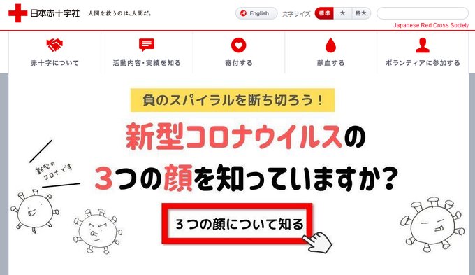 日本红十字会官网有关新冠肺炎疫情的科普界面