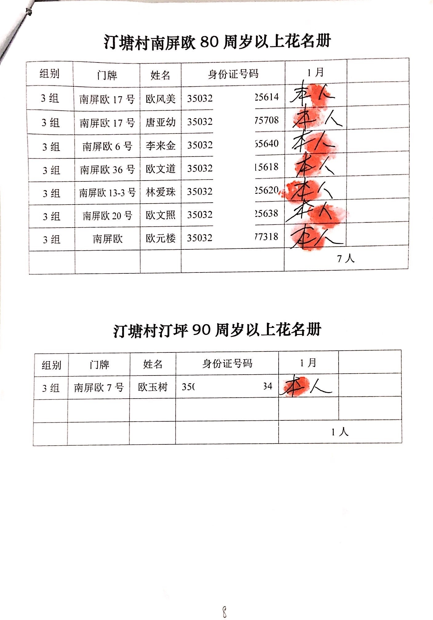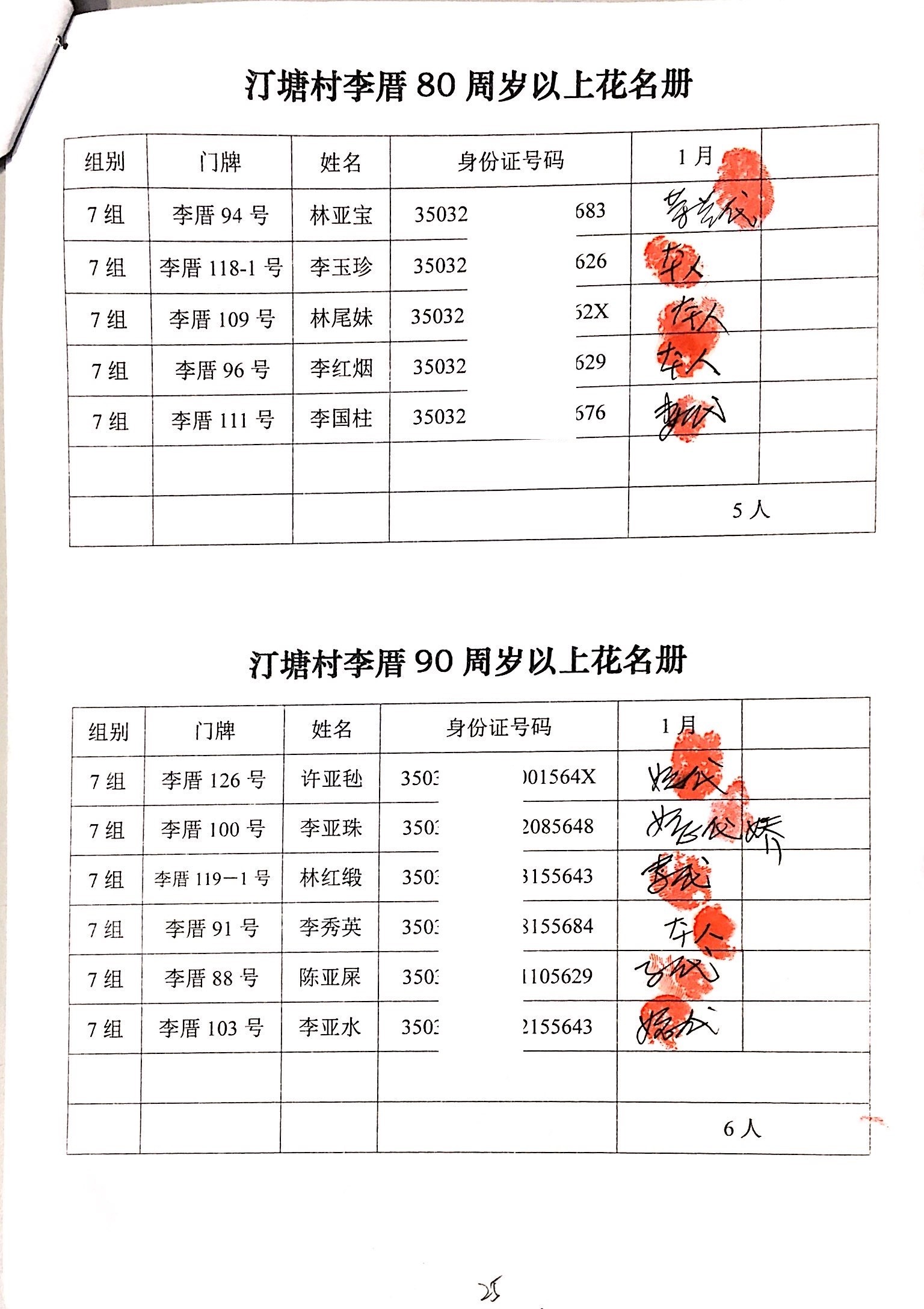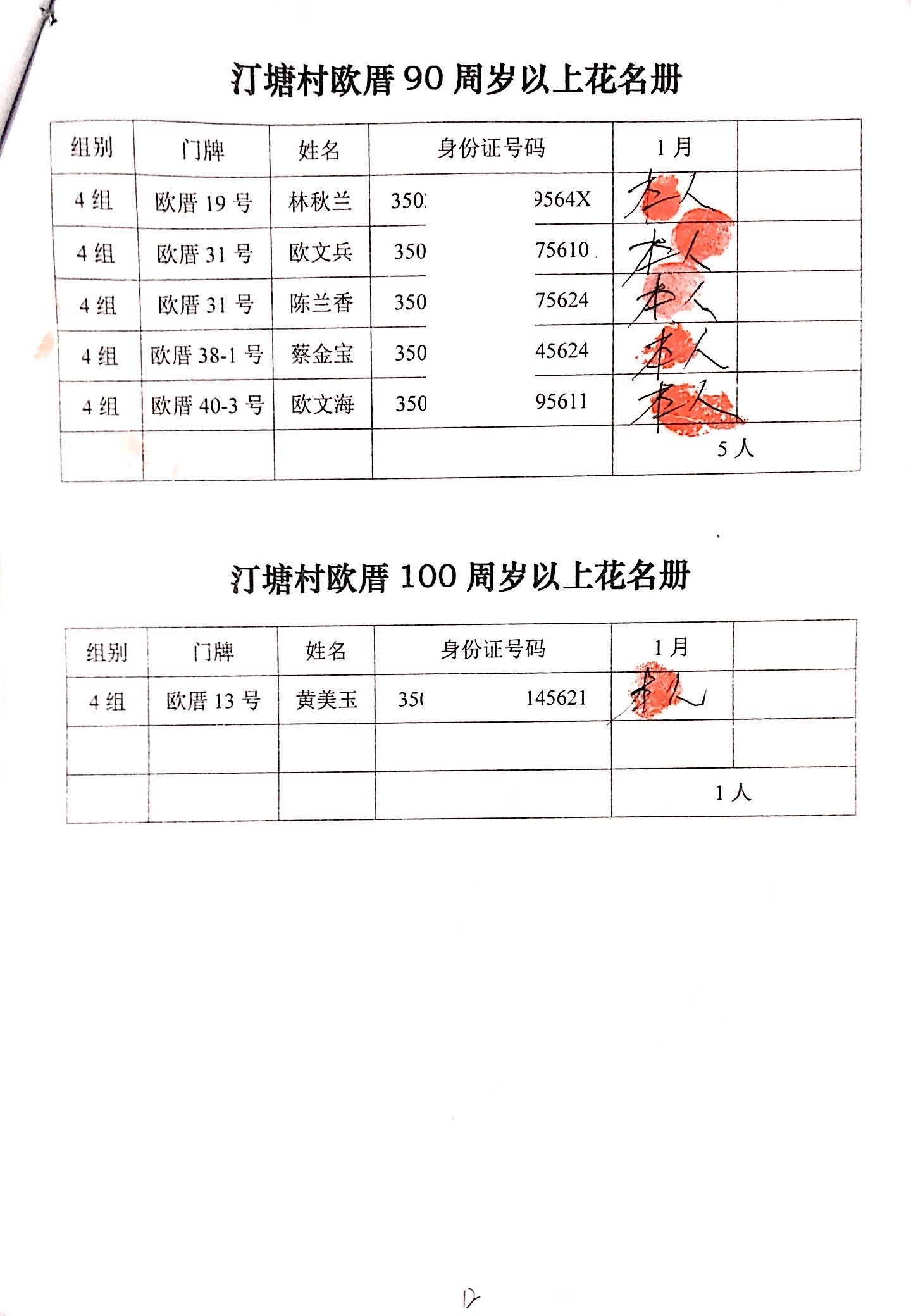 2020年1月,项目为汀塘村70周岁以上的老人发放400-1000元不等礼金(70-79岁老人,一个月400元;80-89岁老人,一个月600元;90-99岁老人,一个月700元;100岁及以上,一个月1000元。)
