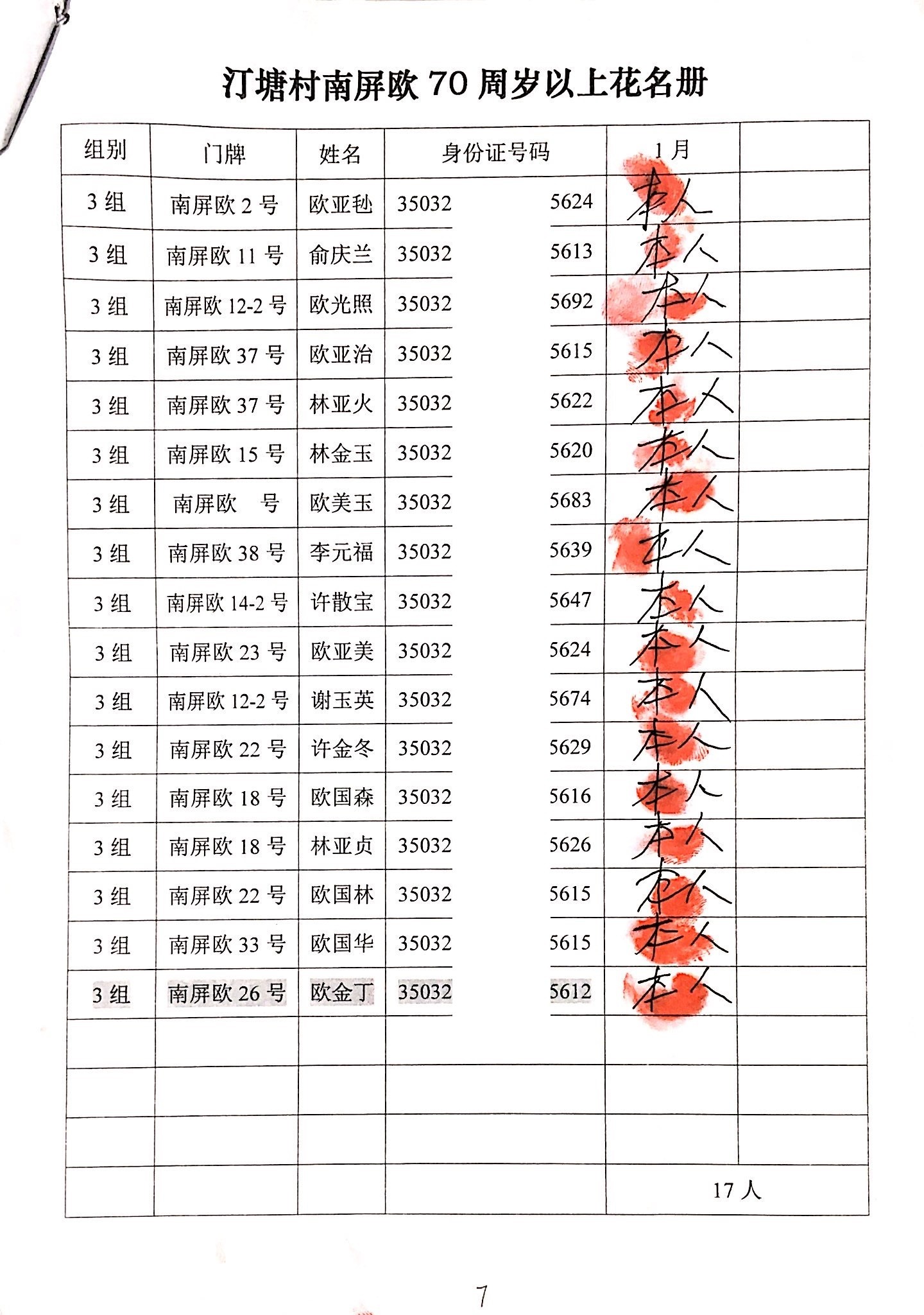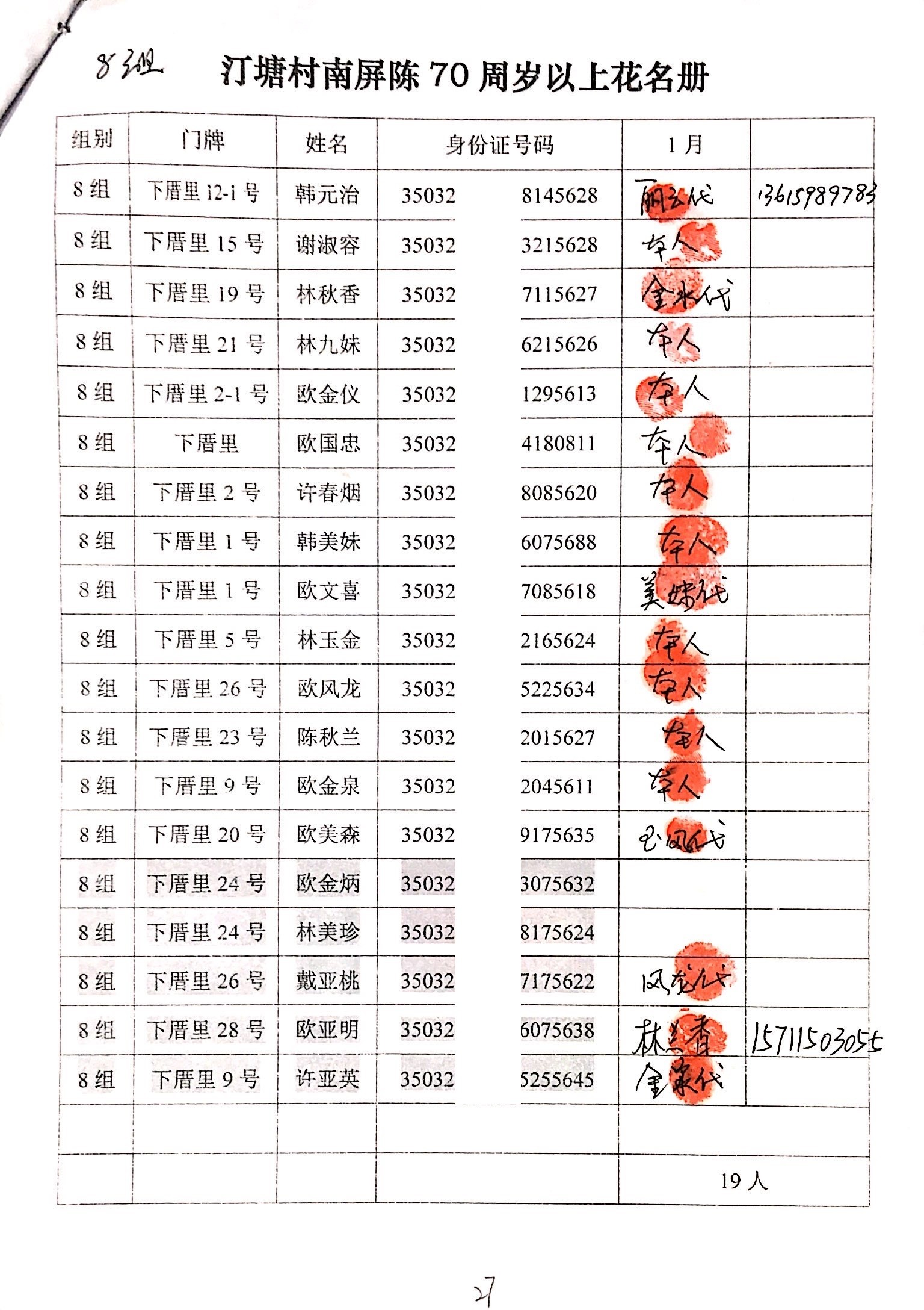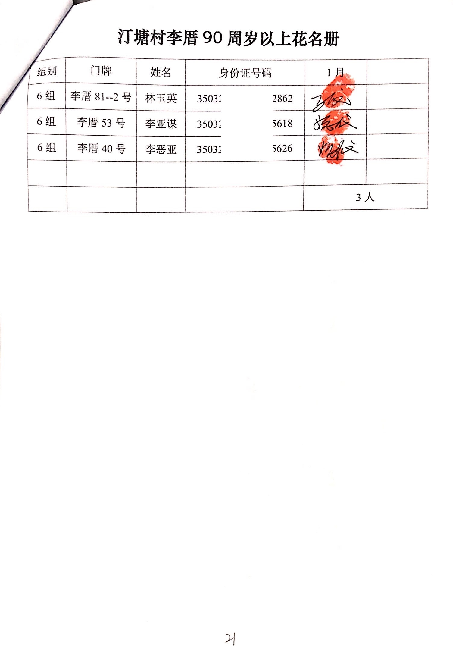 2020年1月,项目为汀塘村70周岁以上的老人发放400-1000元不等礼金(70-79岁老人,一个月400元;80-89岁老人,一个月600元;90-99岁老人,一个月700元;100岁及以上,一个月1000元。)