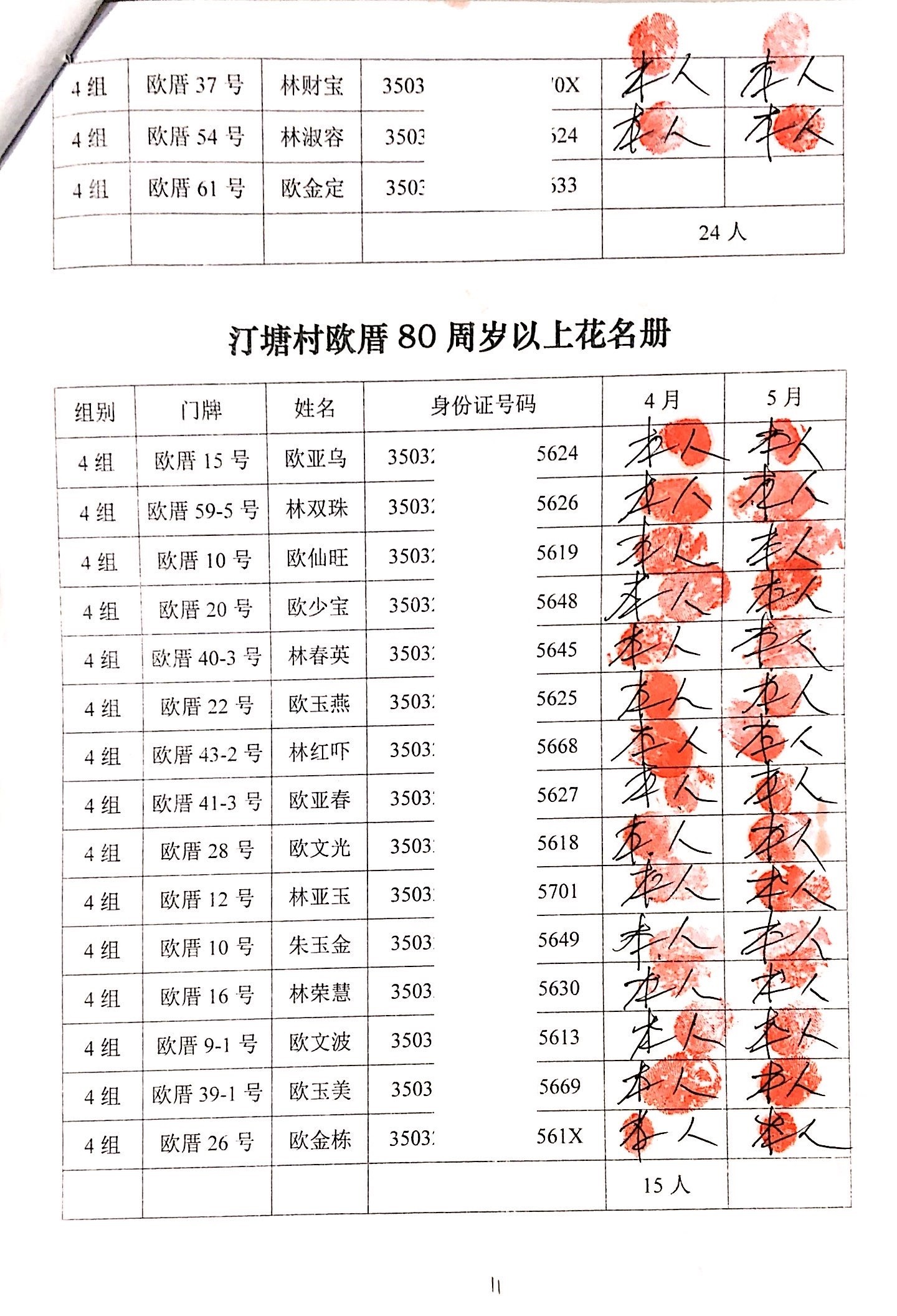 2020年2、3月,项目为汀塘村70周岁以上的老人发放400-1000元不等礼金(70-79岁老人,一个月400元;80-89岁老人,一个月600元;90-99岁老人,一个月700元;100岁及以上,一个月1000元。)