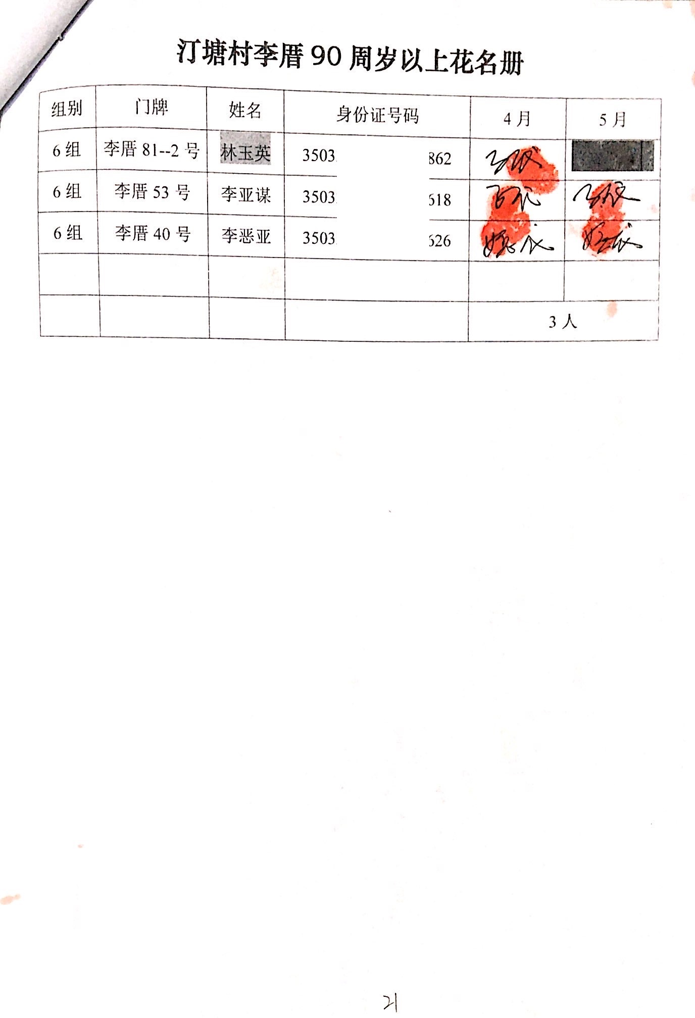 2020年福寿金发放情况公示(2、3月)