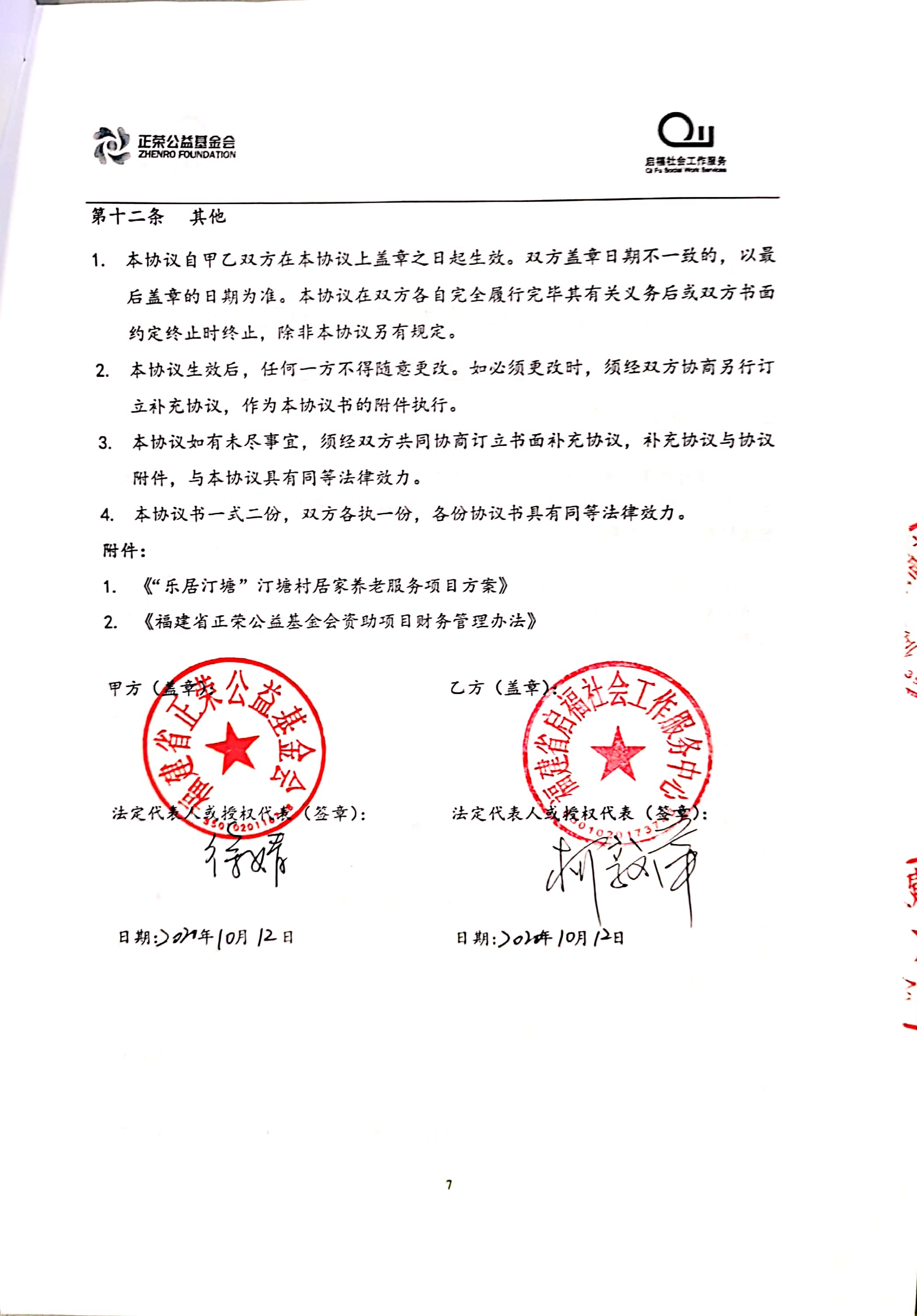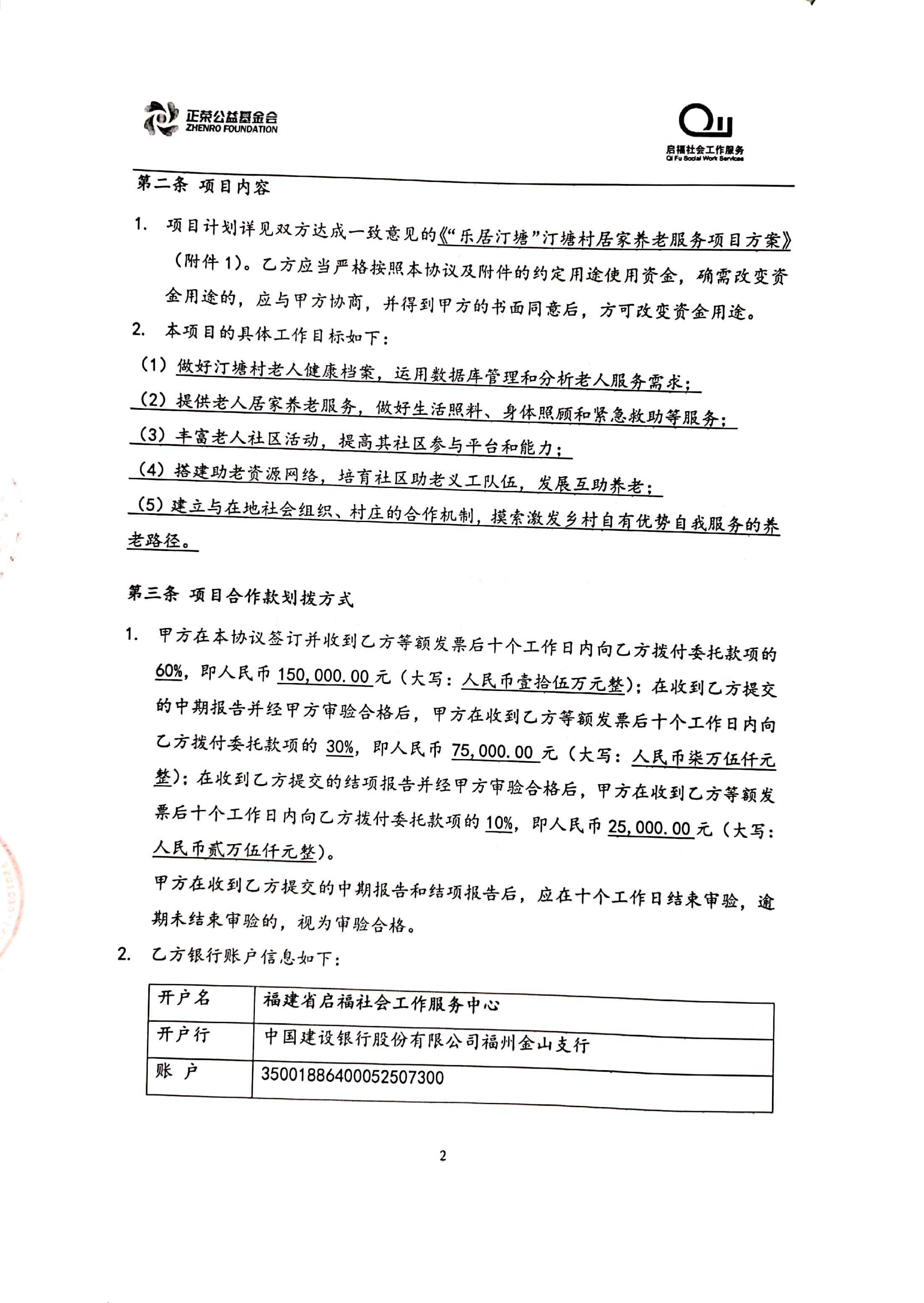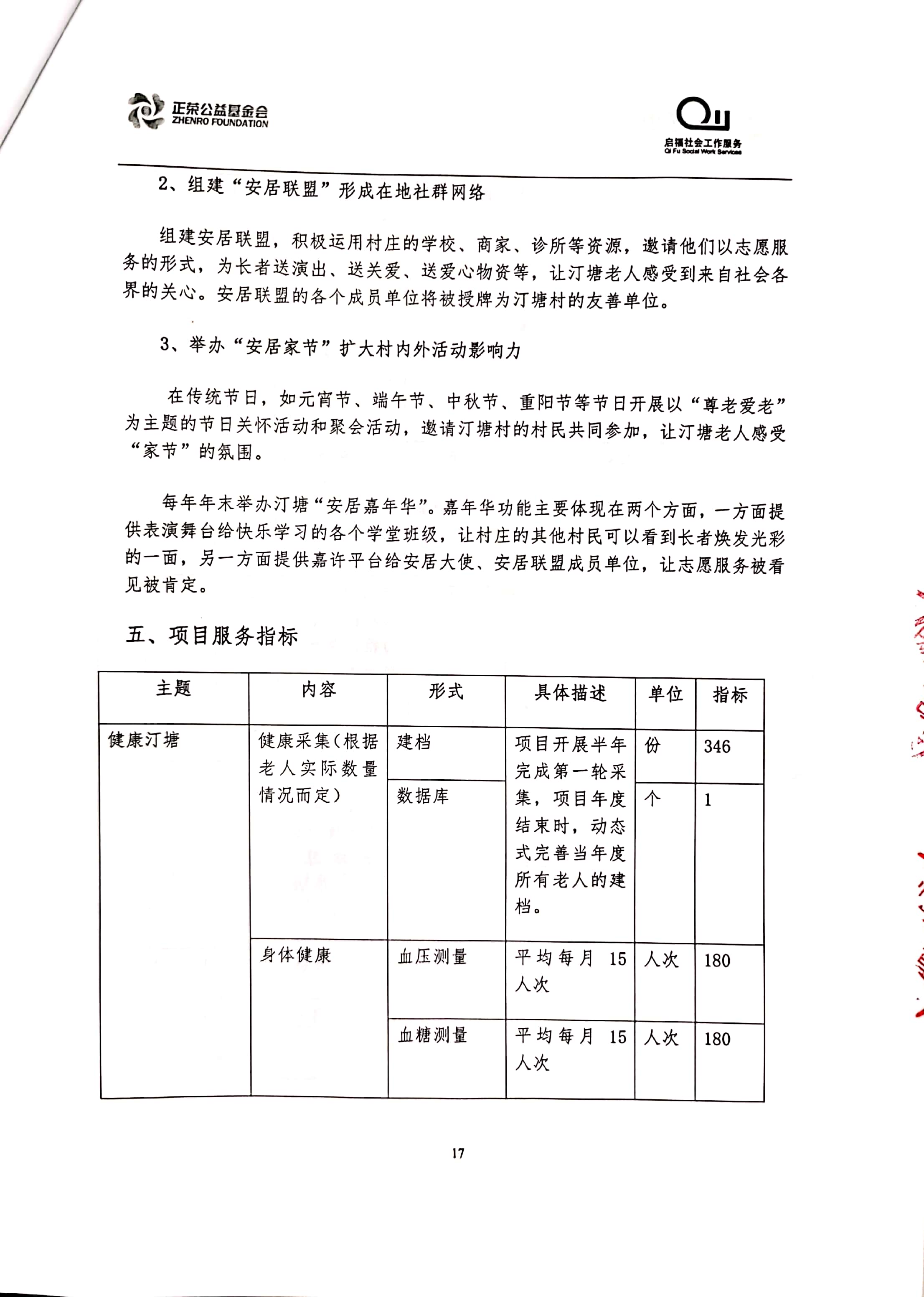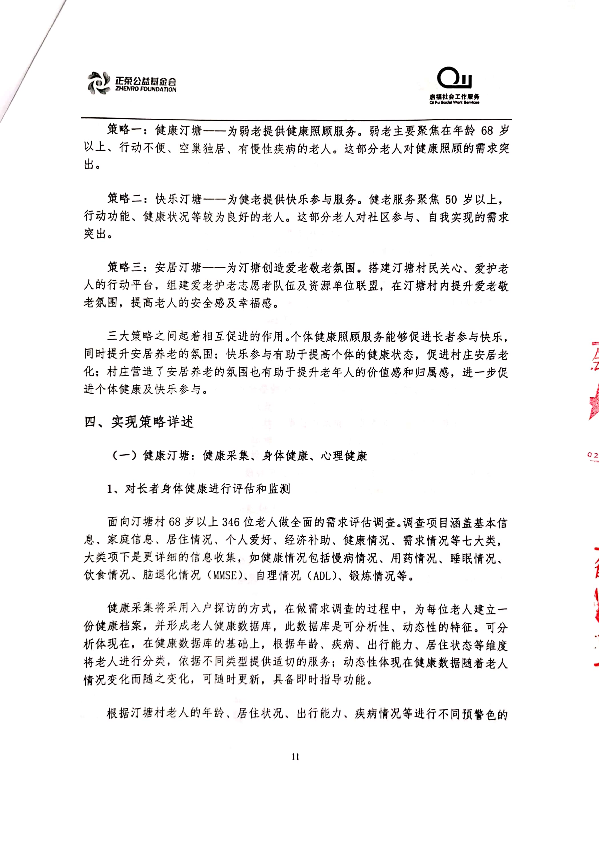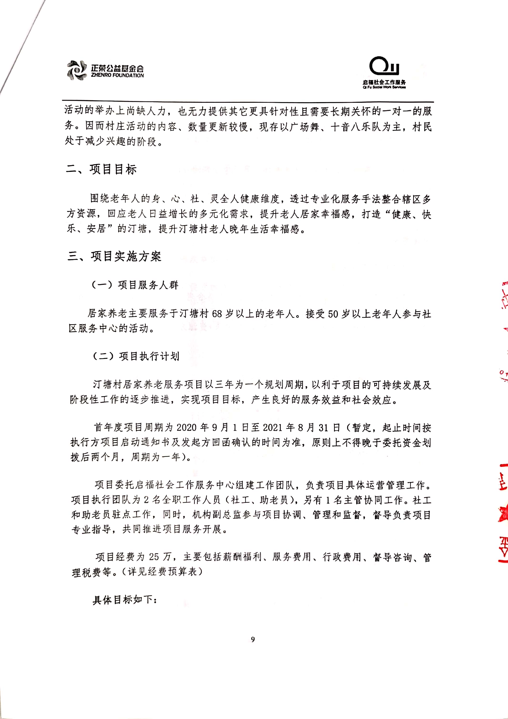 “乐居汀塘”汀塘村居家养老服务项目由林越集团、正荣集团、正荣公益基金会于2020年联合发起,委托福建省启福社会工作服务中心具体执行。项目计划围绕汀塘村老年人的身、心、社、灵全人健康维度,透过专业化服务手法整合辖区多方资源,回应老人日益增长的多元化养老需求,提升老人居家养老幸福感,打造“健康、快乐、安居”的汀塘。立项合作协议及项目方案如下: