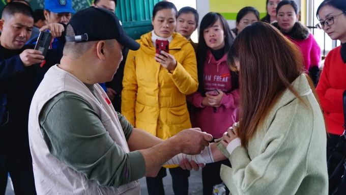 ▲老师们上手学习体验救援技能