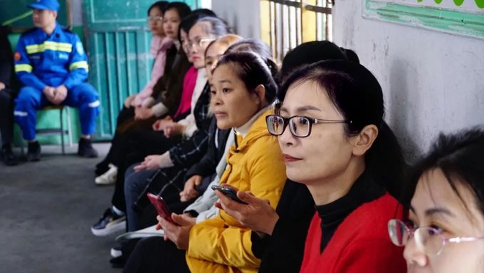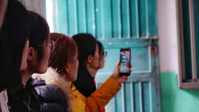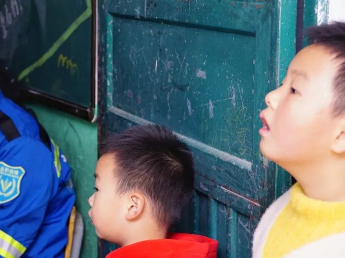 ▲同学们认真观看救援教学