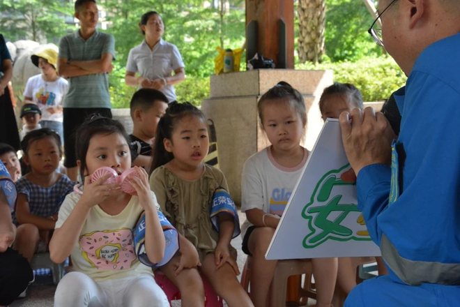正荣安全家第三节课防溺水课程7月3日在福州财富中心小区凉亭处准时开始。